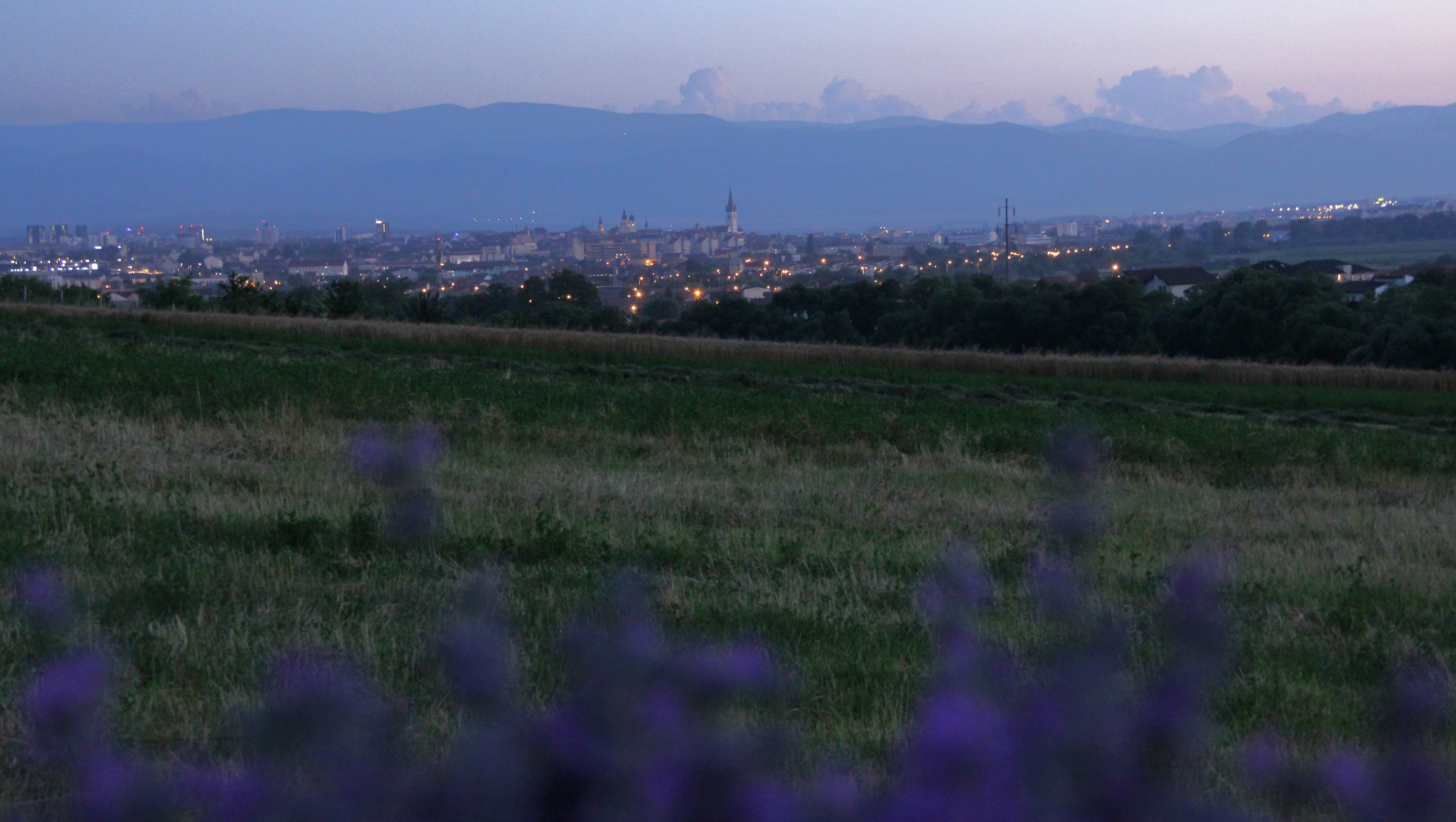 Seară de sfârșit de iunie pe dealul Gușteriței. Se aud greierii în iarbă, albinele somnoroase după o zi de muncă, foșnetul vântului, chemările animalelor de la o fermă îndepărtată, scrâșnetul roților bicicletelor care își duc proprietarii sus la monument pentru a vedea apusul, strigătele vesele ale copiilor care se joacă. În depărtare se aprind luminile Sibiului pe fondul munților Cindrel și al cerului rozaliu.