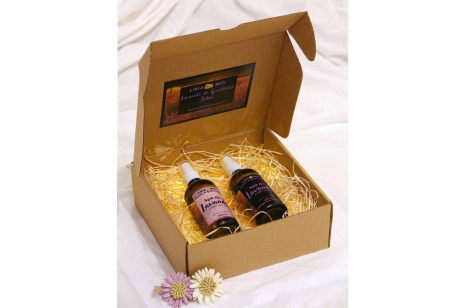 Pachet Duo Îngrijire (format cadou): 2 sticle cu apă florală de lavandă Linia Mov