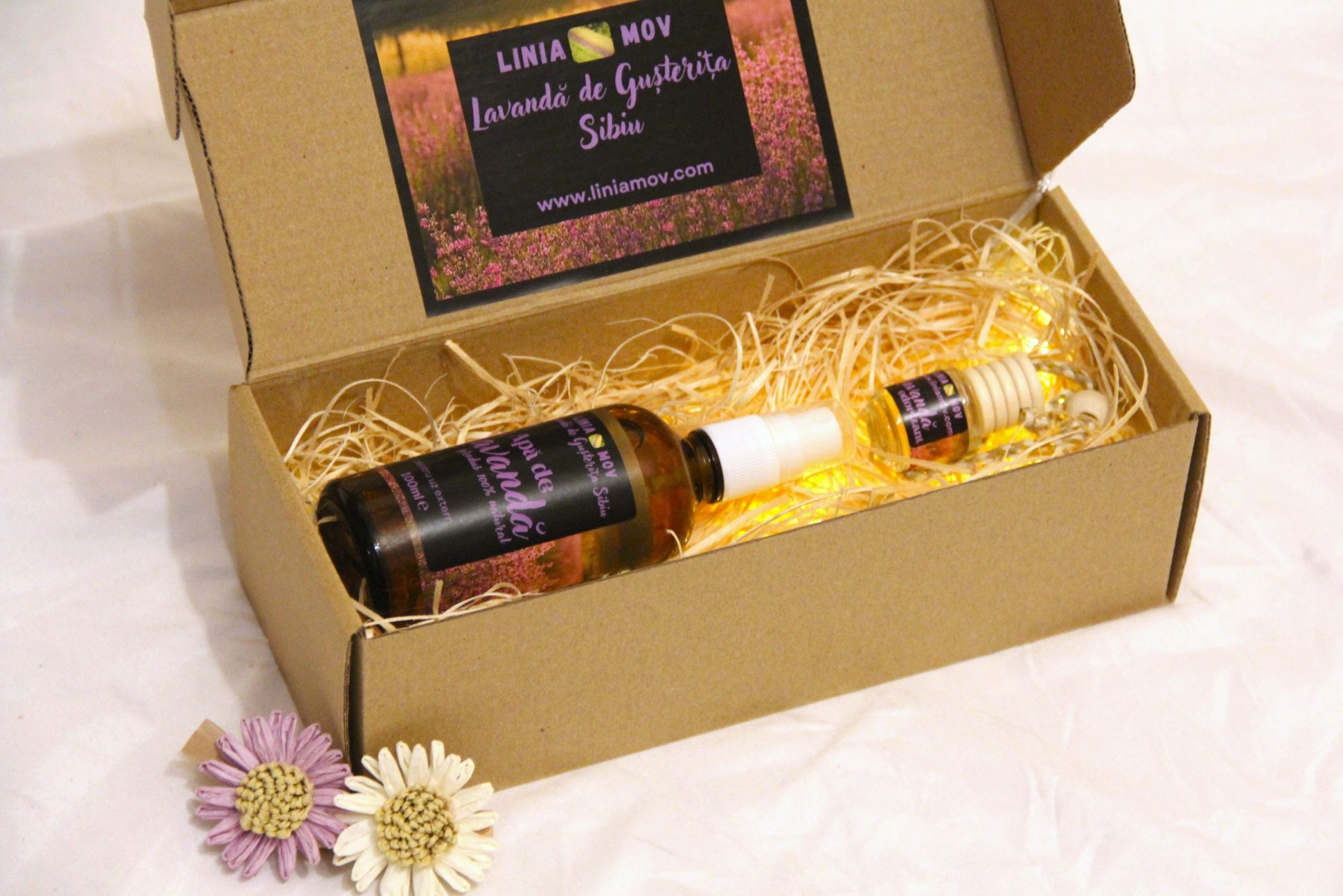 Pachet Prospețime (format cadou): 1 odorizant din ulei de lavandă + 1 apă de lavandă Linia Mov, dark