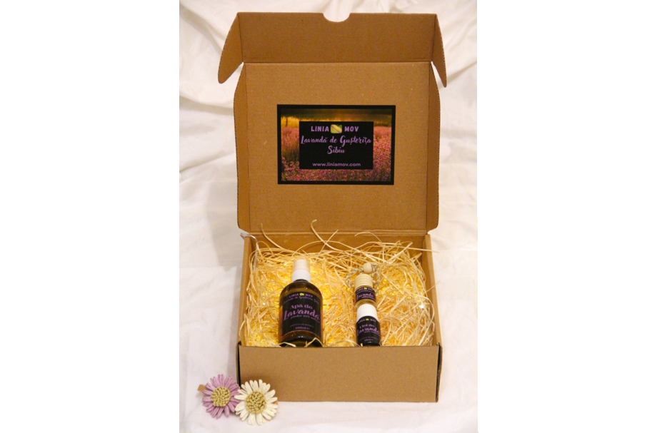 - 1 sticlă de 100 ml cu apă florală de lavandă (recipient din sticlă brună cu pulverizator)